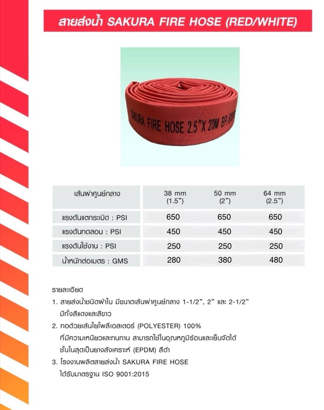 สายส่งน้ำดับเพลิงชนิดผ้าใบ SAKURA ขนาด 1.5 นิ้ว 2.5 นิ้ว ยาว 20-30 เมตร