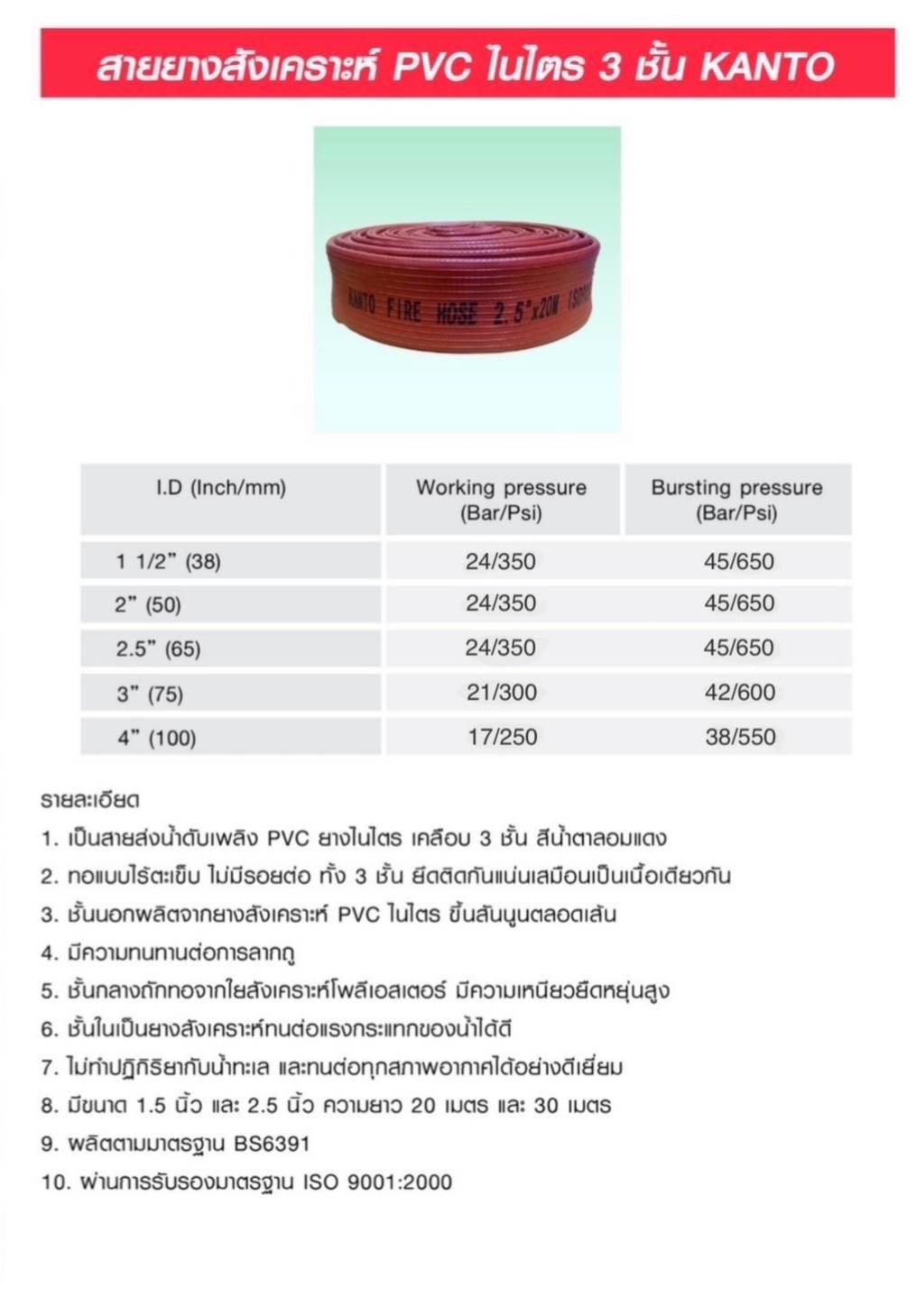 สายส่งน้ำยางสังเคราะห์ ชนิด 3 ชั้น KANTO ขนาด 1.5 นิ้ว 2.5 นิ้ว ยาว 20-30 เมตร