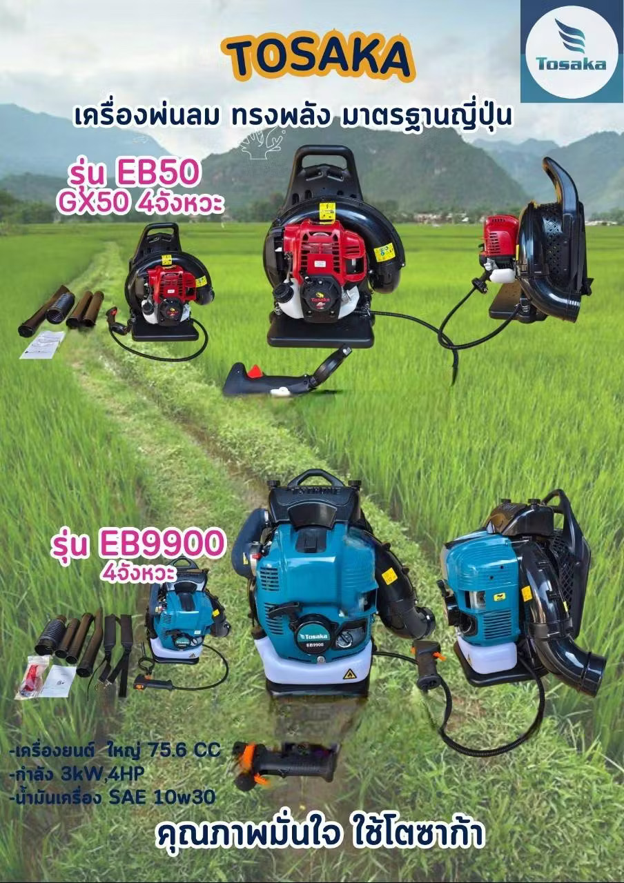 ชื่อสินค้า : เครื่องเป่าใบไม้แบบสะพายหลัง 4 จังหวะ เครื่องยนต์ 75.6 CC. TOSAKA มาตรฐานญ๊๋ปุ่น ราคาโรงงาน