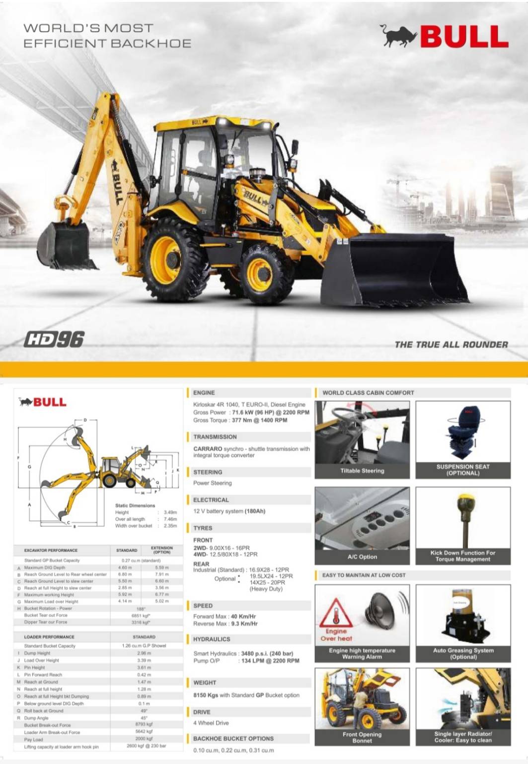 รถตักหน้าขุดหลัง 96 แรงม้า ( BULL )