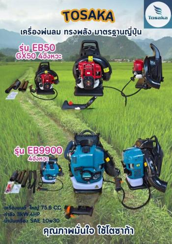 เครื่องเป่าลมหรือเครื่องเป่าใบไม้แบบสะพายหลัง 4 จังหวะ 75.6 CC. TOSAKA รุ่น EB 9900 มาตรฐานญี่ปุ่น ราคาถูก