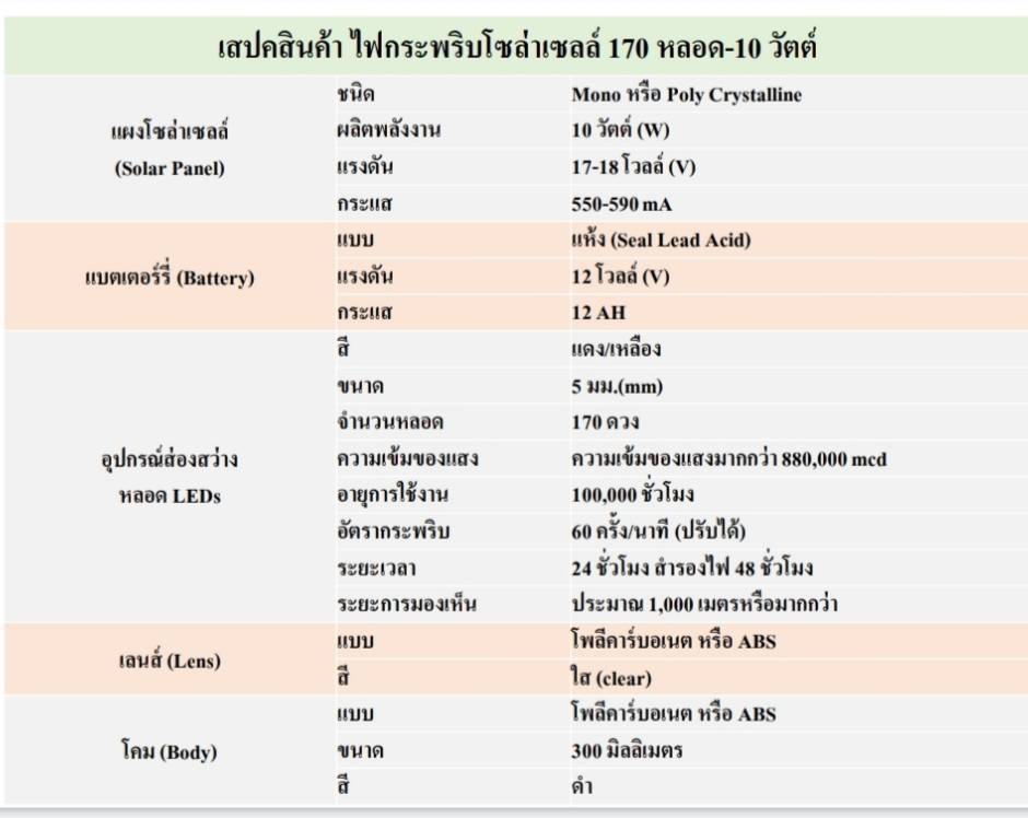 ไฟกระพริบโซล่าเซลล์ สีเหลือง สีแดง ขนาด 170 หลอด 230 หลอด 10 วัตต์ ราคาถูก
