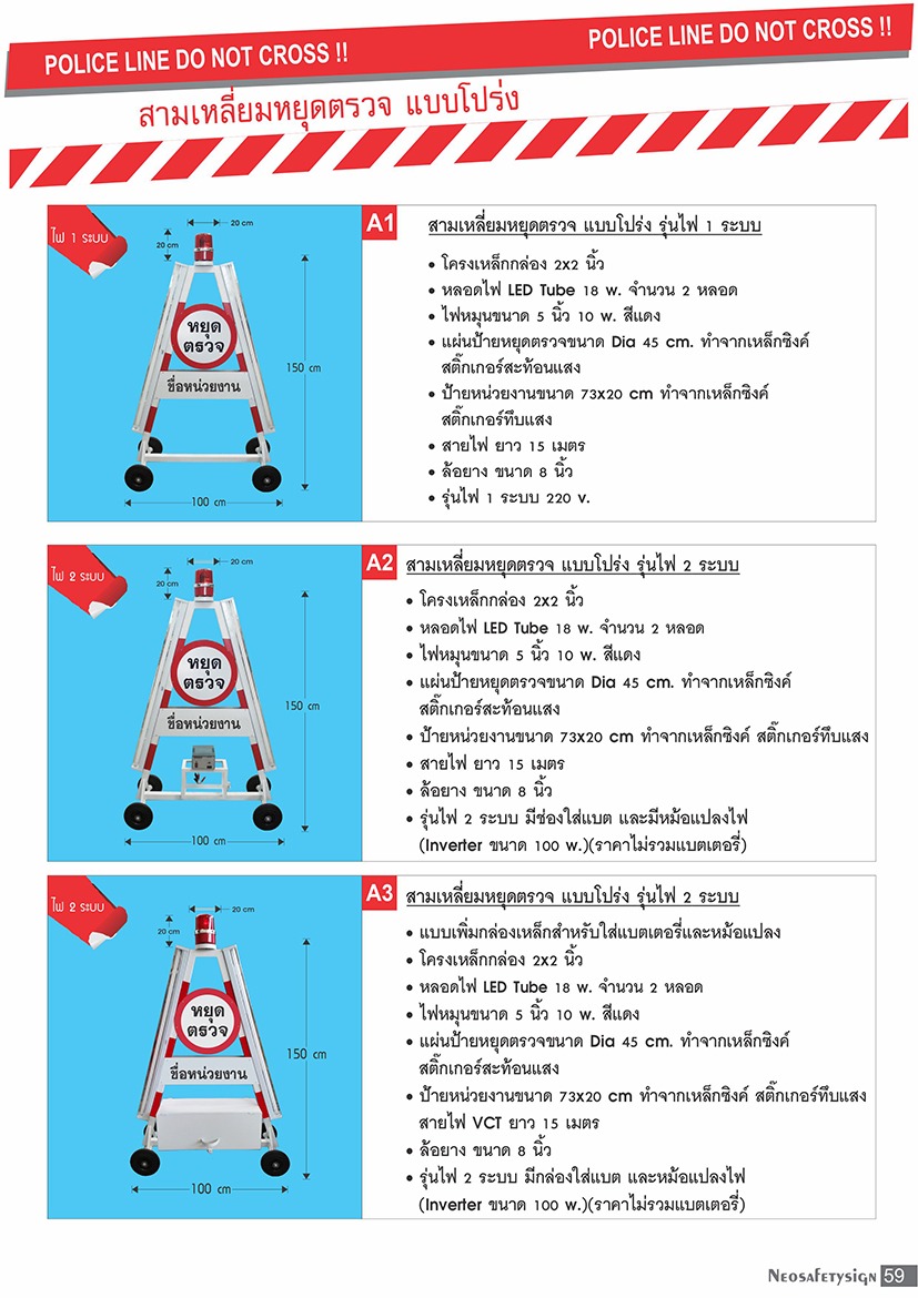 ป้ายสามเหลี่ยมหยุดตรวจ 2 ระบบ ใช้ไฟบ้านและแบตเตอร์รี่ ราคาถูกจากโรงงาน