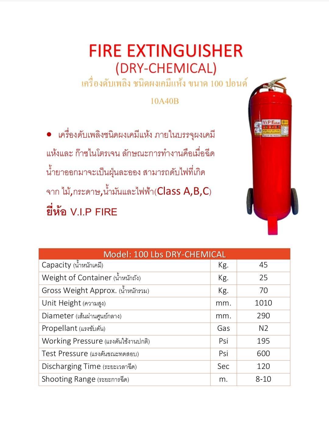ชื่อสินค้า : ถังดับเพลิงชนิดเคมีแห้ง แบบรถเขน ขนาด 100 ปอนด์ 10A40B มอก.332-2537