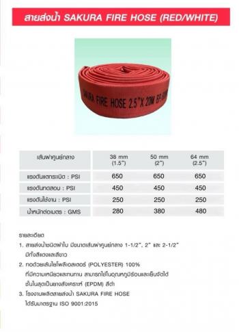 สายส่งน้ำดับเพลิงชนิดผ้าใบ SAKURA ขนาด 1.5 นิ้ว 2.5 นิ้ว ยาว 20-30 เมตร