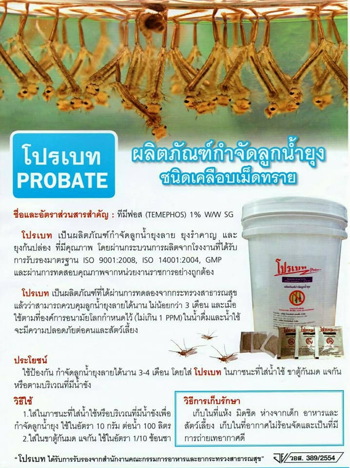 ทรายอะเบท โปรเบท ผลิตภัณฑ์กำจัดลูกน้ำยุงต่างๆ ขนาดบรรจุ 20 กรัม 50 กรัม